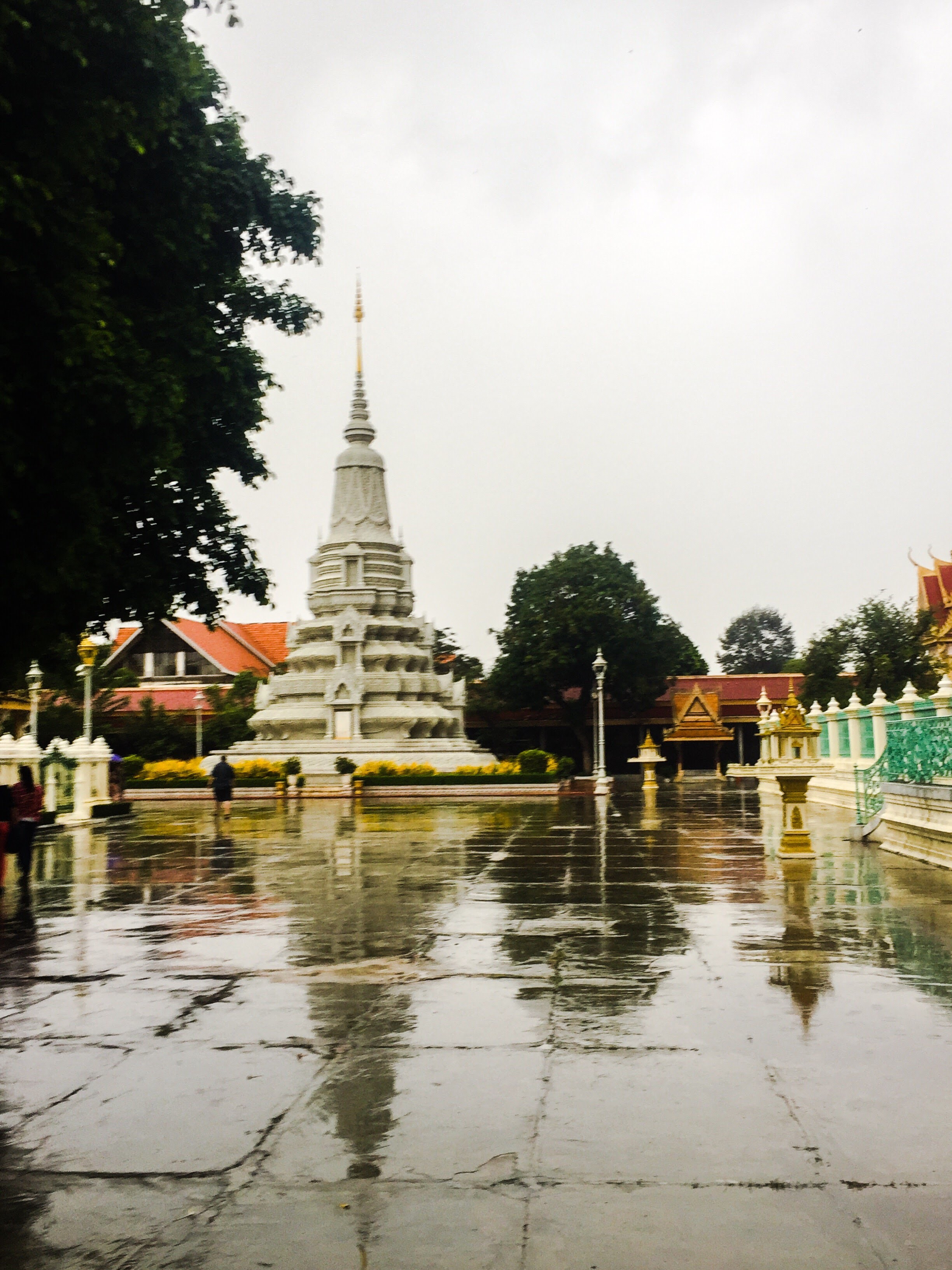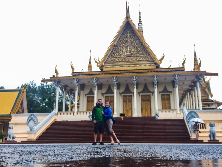 Turns out the Royal Palace is only a few blocks from our place so after a brief aimless stroll, we found ourselves buying tickets to access the Royal Palace and we hired Wan, an excited will spoken Cambodian with a big smile, to be our guide. They didn’t require you to have a guide but I’m really glad we brought Wan on board. He knew what each building was used for along with a fair bit of history as well as some cultural tidbits that’ll be good to know the rest of our trip in the Cambodia. The palace is very impressive. According to Wan, nearly everything had symbolic meaning, even the colors of the buildings. They were gold and white to represent Hinduism and Buddhism,the two religions of Cambodia.