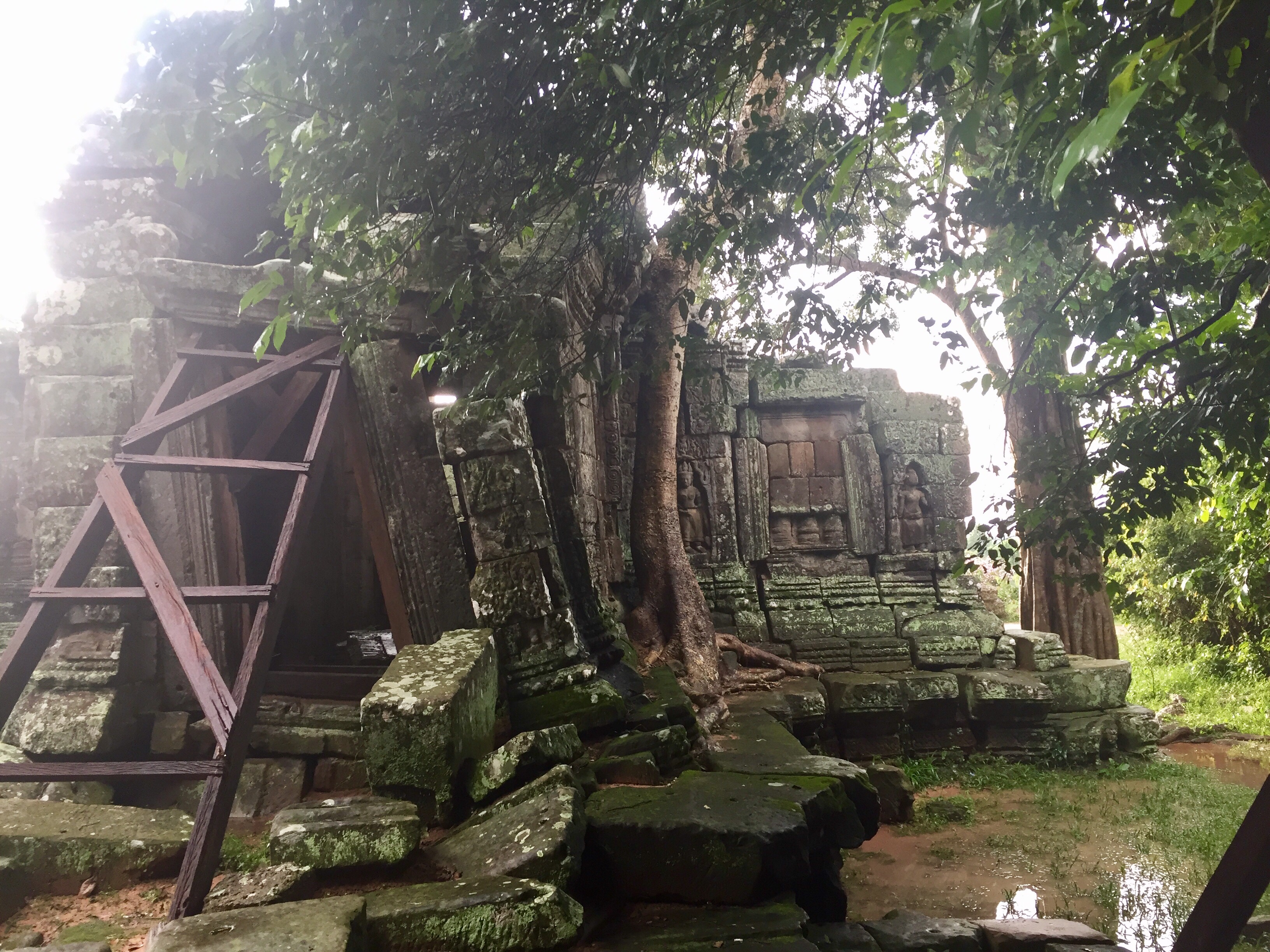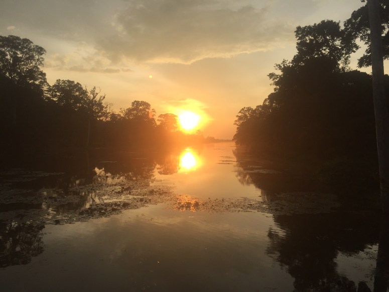 Our guesthouse (Babel) had told us they if we booked our trip to the temples a day ahead, we could take a sunset walk for free. So we grabbed Joy, our personal tuk-tuk driver while we’re here at Babel, and headed to a secluded temple that’s a half hour walk from any of the main features. Not only was this not the quite temple advertised by Babel (the “empty” path had motos coming and going leading to a fairly crowded temple in the middle of nowhere. Plus the front desk worker warned us to not go at sunset because of snakes) but also, our three day passes were punched, wasting one of our days. So our well laid out plan to tour more temples tomorrow then bike around the temple areas later in the week was ruined. Double whammy. Thanks, Babel.