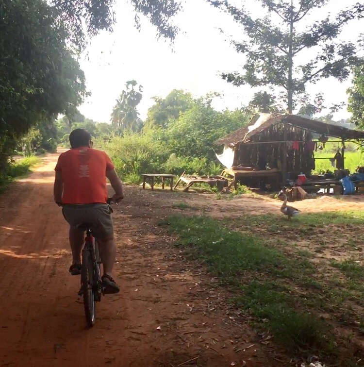 Speaking of going along with the local culture, we did our best to relax and dodge the heat of the day from 11-2:00 pm. The heat, humidity and lack of A/C and showers have made for one of the stickier versions of myself. There seems to be no part of the day or night that we’ve stopped sweating. With that in mind, (damned if you do, damned if you don’t) we decided to take a bike ride into town (Phumi Ta Prak, I think).