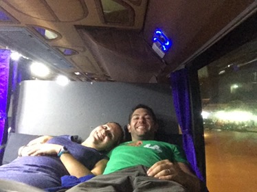 I hadn’t realized that night buses meant that we would have our own bed. This thing was sweet: a bed we could share, outlets and wifi. Greyhound, you aren’t even in the same league as these guys.