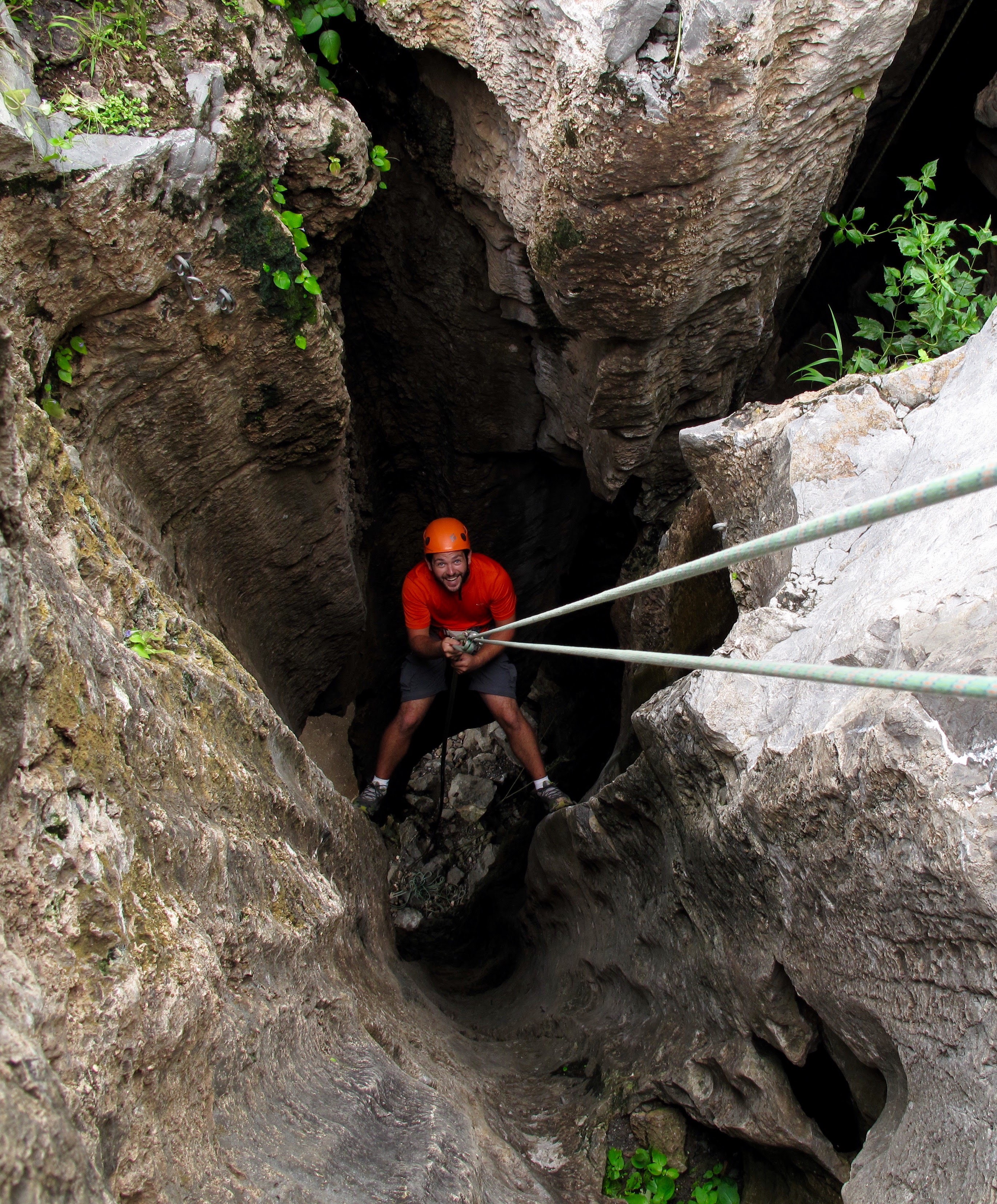 Next it was time to abseil 100 feet into a hole in the mountain. At first we couldn’t see the bottom but we lowered ourselves down a chimney to back down where we began.