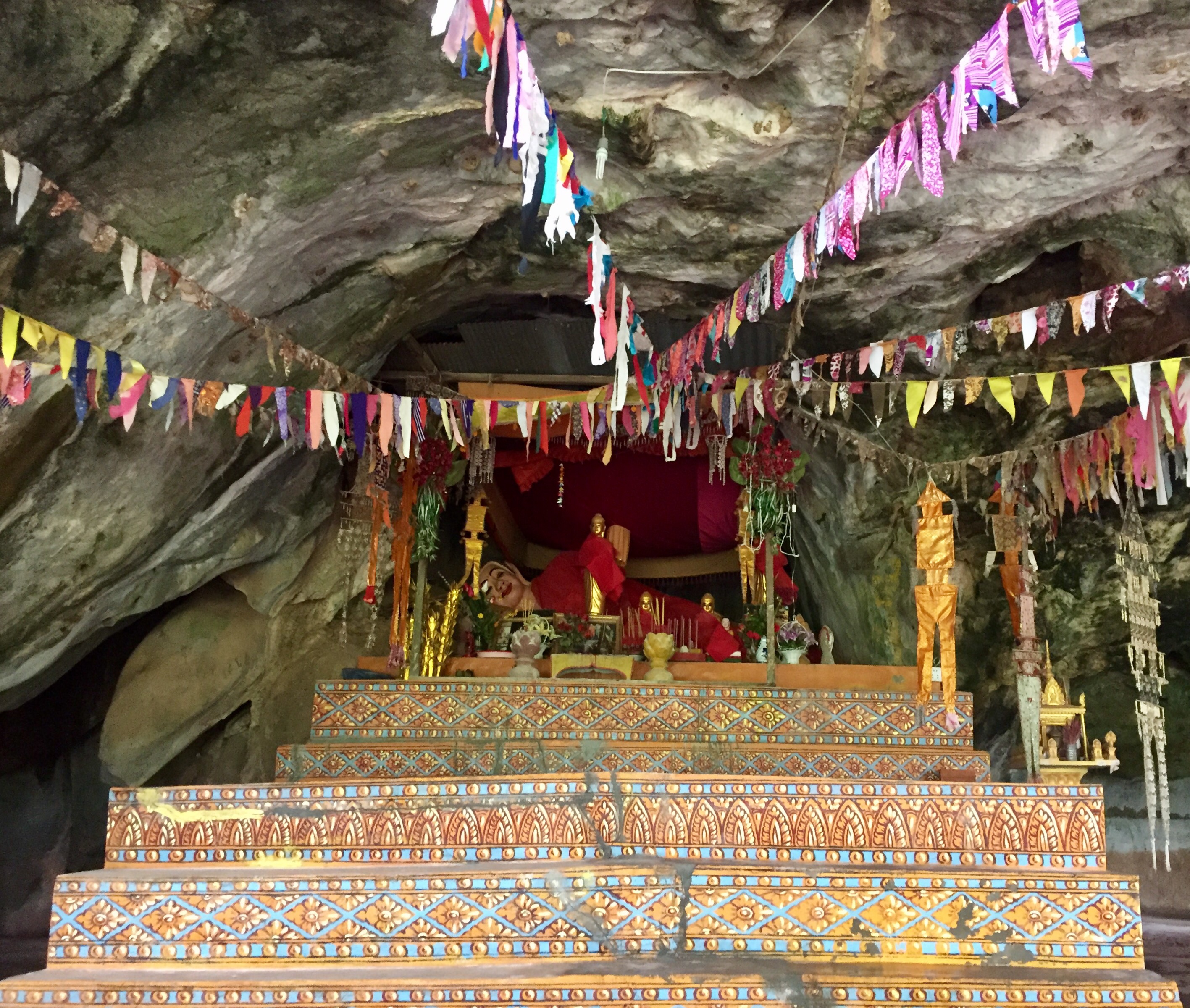 Next it was time for our cave tour. It used to house a temple within the cave but it was destroyed by the Khmer Rouge. The cave was a maze of passageways through the mountain, some you had to squeeze through, others you could see open air 150 feet up. There were roots that stretched from the cave floor a hundred or more feet to trees on the surface. Bats flew past us as we traversed through some awesome caverns. We walked, crawled and climbed about a mile through the cave system before exiting at a still active cave temple.