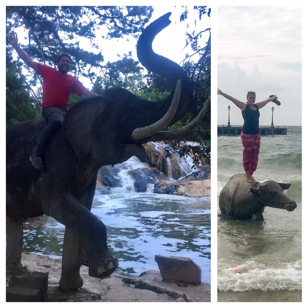 After some much needed rest, we made our way to the Cam Ly waterfall for a sunset walk. The waterfall had been turned into a park of sorts, complete with stone animals, benches and a small bridge crossing over top the waterfall. My highlight was riding a stone elephant at the base of the falls. After all, it was my turn to ride a statue after McKayla’s sweet water buffalo in Sihanoukville.