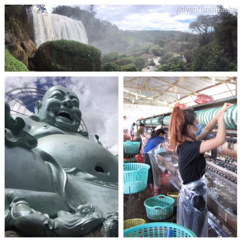 Some other highlights on our Easy Rider cruise was Elephant Waterfall, a beautiful temple, a 40 ft Buddha, a silk worm factory and a trip through a local minority village.