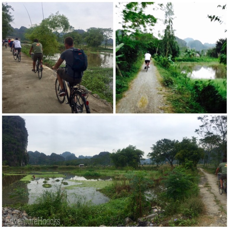 The bike ride started off a little awkward when I accidentally looked at a guy with a camera. He took my picture then road his moto ahead of us to take another picture while we were riding, but we’ll put a pin in that for now. The bike ride was pretty sweet. We went a little ways south of Tam Coc then cut onto a dirt trial that zig-zagged through some rice fields set in the middle of those same rugged hills. Every acre of useable land was utilized for rice production. There were buffalo and ducks being raised in the rice fields to one of the more picturesque backdrops you could imagine. It seemed wonderful on this cloudy, cool day in November, but it seems like it would be a steamy, mosquito-filled hell in the hotter parts of the year with all that standing water. If you hadn’t figured it out already, my paparazzi had printed out my pictures and was waiting back at the bike rental to sell them to me. I felt bad but neither picture was near McKayla quality and it was kind of a sneaky move. Although he was a persistent little shit, I stuck to my guns, “no photo.”