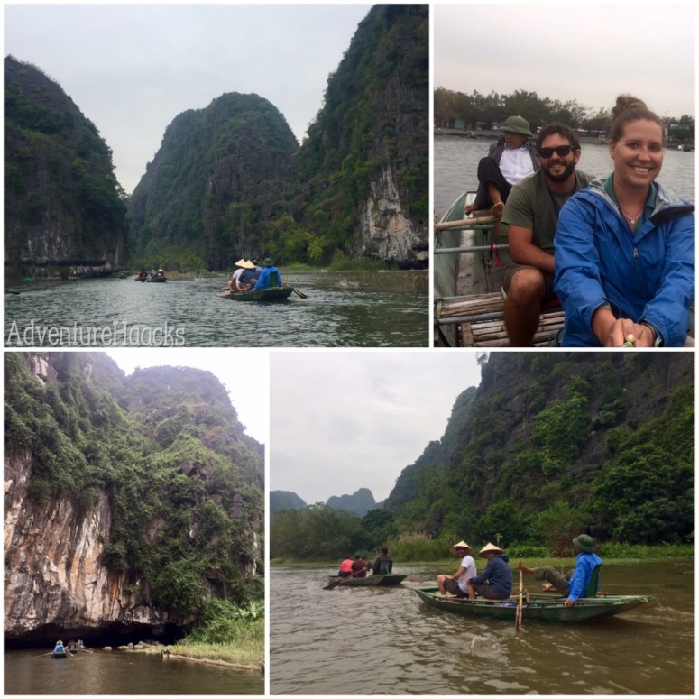 Heading up river, we now know to avoid people aiming their cameras at us, just don’t look them in the iris. Thankfully, the potential paparazzi were few and early on so we could enjoy the peace and tranquility of Jurassic Park. Or at least the closest landscape I’ve seen to the set of Jurassic Park (but actually, the new King Kong was filmed here – different giant beast). This place was other-worldly. We slowly made our way into a narrow gauntlet of sleepy protruding mountains. Three different times we made our way under the mountains through narrow cave tunnels the water had chiseled out through time. In several cases, there was only a few feet of clearance between the cave ceiling and the water. I’m not sure any boats bigger than these little row boats could make the squeeze and it’s a good thing, the quiet splash of the paddles was a big part of the charm of this tour; motors would have certainly dampened this amazing experience.