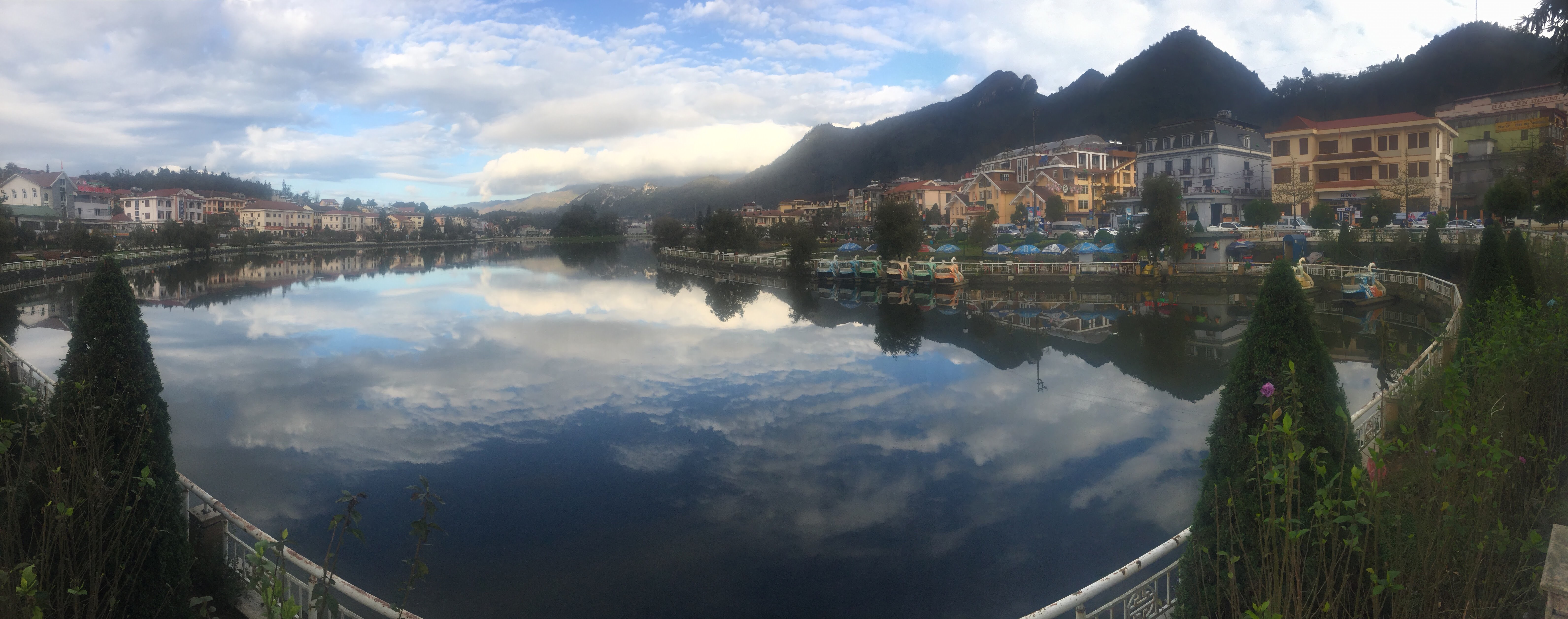 The easiest way to get to Sapa from Hanoi was to catch a ride with one of those tour group companies. It was a 5 hour bus ride half filled with multilingual announcements and itineraries, but we made our way through the twisty mountain roads and into Sapa. Upon arrival the bus was swarmed by, tiny, colorful Hmong women looking to hawk thier wears. Apparently we found two of the more determined ladies. You can read about that encounter here. After getting settled at the Golden Plaza Hotel, we went for a walk before sunset to check out the town. There were several street vendors near downtown, a nice small lake and vibrant community that was clearly in the middle of an upgrade. Buildings were going up all over the place to match what seemed like a pretty high demand for tourism.