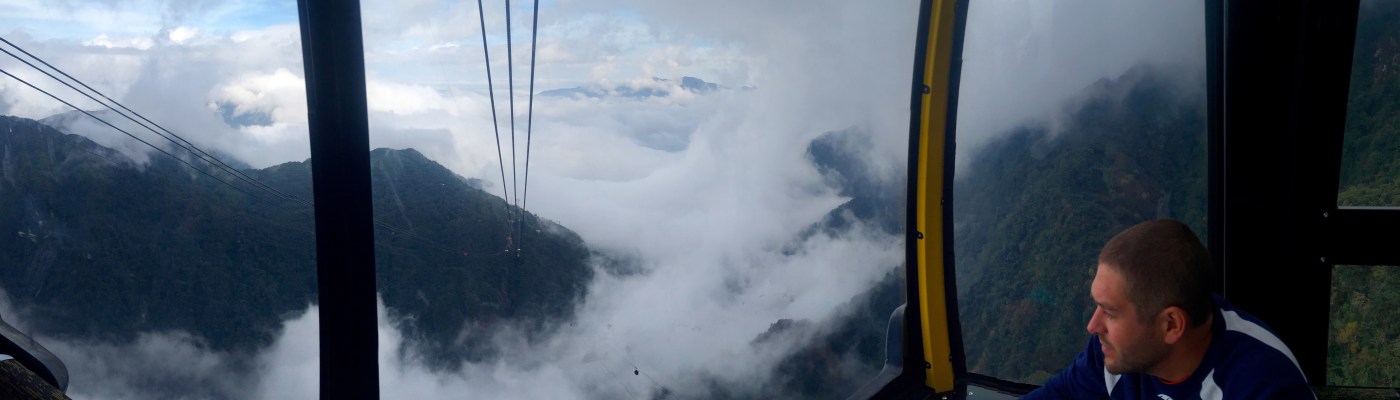 It came down to the last day – would we get to hike up Fansipan? the clouds hadn’t lifted but they might… After a cool cloudy morning we came to the conclusion that without a guide, low visibility, a muddy trail and a 9 mile hike with over 5,000 ft of elevation gain was going to have to be a no go. Instead there’s a tram that turns that 5,000 ft climb into a ride along with a 500ft stair climb to the summit. I’d never thought I’d hear myself say/write this but I’m glad we didn’t climb that mountain. Along with all those reasons I listed earlier, there wasn’t a difference in price if you took the gondola one way and that last 500 feet of stairs contained construction and a shit load of Asian tourists that would’ve certainly dampened an extreme effort. Thankfully, as it turned out, the Ndola ride was so spectacular, it deserved a round trip. The summit itself was crowded and stuck in a cloud but the gondola rode in and out of the clouds to reveal amazing views just above mountain forests and to well over 2,000 feet above the valley floor.