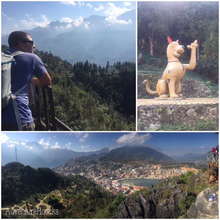 On our clear day we ended up making the right decision to hike up to Dragon mouth mountain. It followed, what is becoming, the normal pattern of nice natural attraction in Vietnam; buy a ticket at the gate, make your way through a gauntlet of local vendors, the path opens to gardens and obscure statues, then you’ll get to the main attraction. In the case the main attraction was a hilltop with an observation deck giving a 360 degree view of Sapa and a great surrounding area filled with agriculture, tiny houses dotting the hillsides, all ringed by tall tree filled mountains. Some of the more obscure statues I mentioned included a dragon water fountain, a ram, the CU buffalo (Rocky mountain showdown in full swing here in Sapa) and finally a Scooby Doo giving the finger; you just can’t make this stuff up.