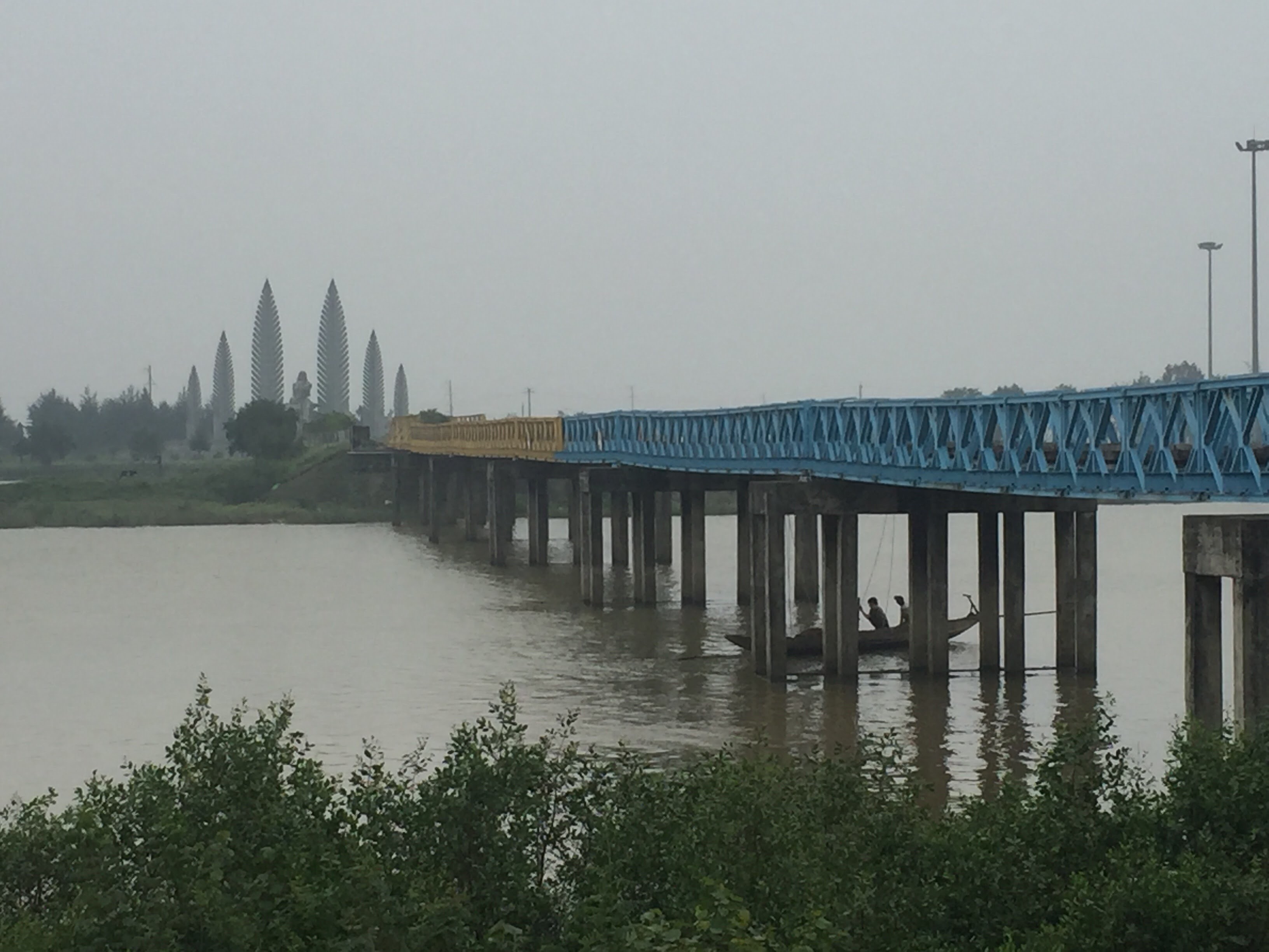 Usually when you think of a demilitarized zone, you think of an area where no fighting takes place. However, it seems that the DMZ was one of the most heavily bombarded areas; craters don’t lie. This stop was to the bridge that connected North and South Vietnam across the Ben Hai River. The bridge was half blue (north) and half yellow (south) and had memorials on either side. We had stopped on the north side which also had a small museum displaying war remenants and photos from the war. At both sides we were lucky to have two fact based, neutral guides. We’d heard stories of guides going off with pride about which types of traps killed and maimed the most Americans. I’m glad we weren’t put in that position because I’m not sure what my reaction would have been but thankfully we didn’t have to deal with that.