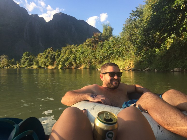 The following day was December 21st the winter solstice, what better way to celebrate\mock winter than to spend the day floating on a river. Our hostel had an advertisement that offered tubes for rent and transportation, so we booked. We’d seen tuk tuks overflowing with tubes and tourists heading north, the idea was to get dropped off north and float back south to town. However, our tuk tuk kept going further and further south. At first, we thought he was going somewhere to pick up more tubes, but we both got a little nervous when he started heading down a dirt road 4 or 5 miles south of town. Turns out we booked with the new company that took you south of the city, then McKayla and I would float alone for ‘about 2 and half hours’ further south then we’d see where to get out and the driver would be waiting to take us back to town. After an awkward talk over the phone (because the driver didn’t speak any English), we made him take us back into town. I’m sure it all would’ve worked out, but south to go south, no clear exit, no idea where we are, no thanks. I’m glad McKayla was persistent about going back, because I probably would’ve just gone with it, but we got back to VV, got a refund and found the right company with enough time to get on the river by 2pm.