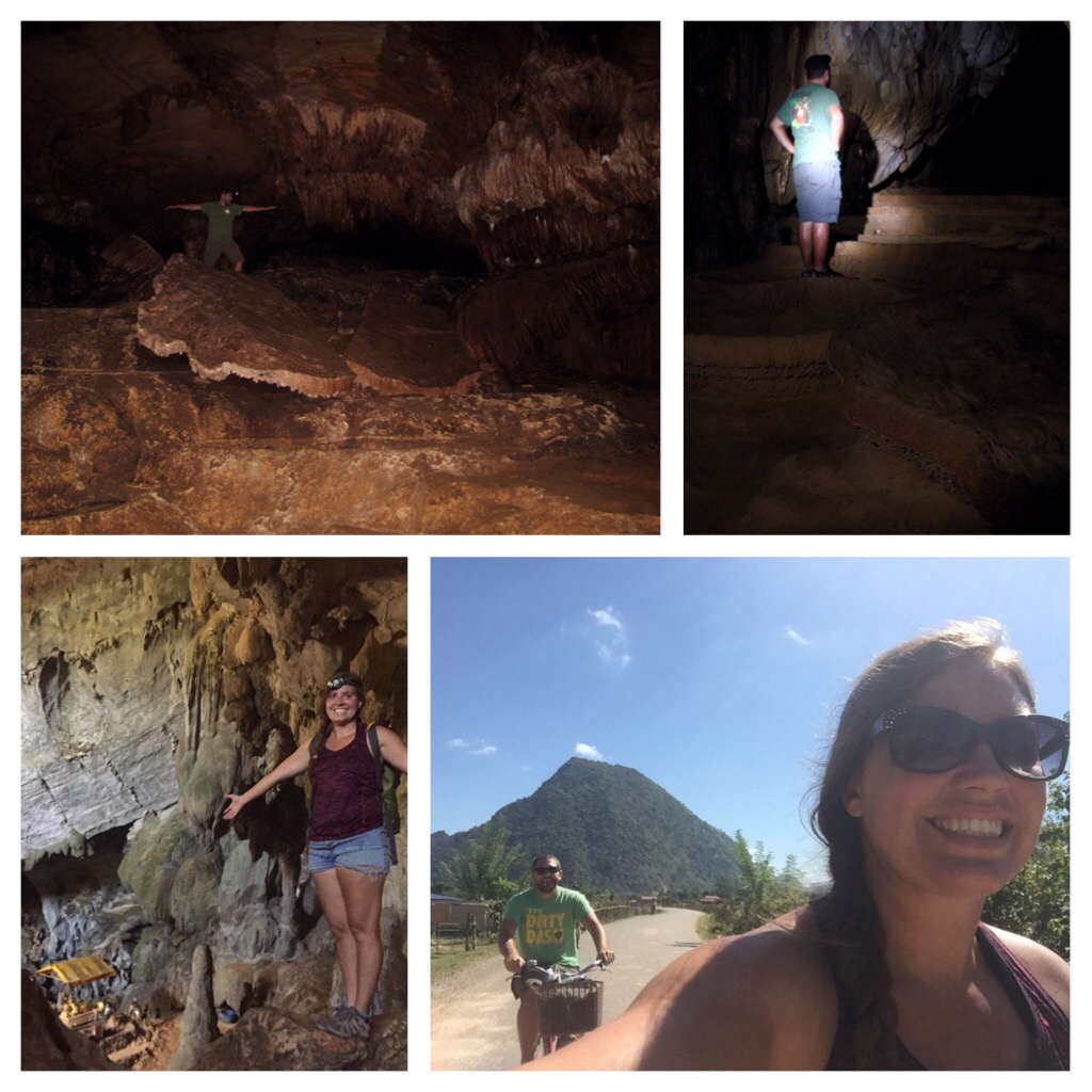 Our second day in VV we decided to head north to water cave where you could sit on a tube and pull yourself by a rope into the cave. There were guided options but we decided to rent a moto instead of going with a tuk-tuk service. This place met my two requirements for Moto rental: little to no traffic and mostly paved roads. I know, high standards. It’s a good thing we went on our own, we noticed when we got there the tours weren’t going to two of the caves just down the path from the main attraction. It worked out well for us, we had the two caves entirely to ourselves. The first was a pretty crazy natural tunnel that was big enough to fit a bus. It continued into the Earth a half mile or so before we reached the end. The second had a maze of passageways and some really good acoustic stalactites perfect for amateur drumming. As usual, both had a Buddha guarding the entrance. It was nice to have those caves all to ourselves in the quiet darkness.