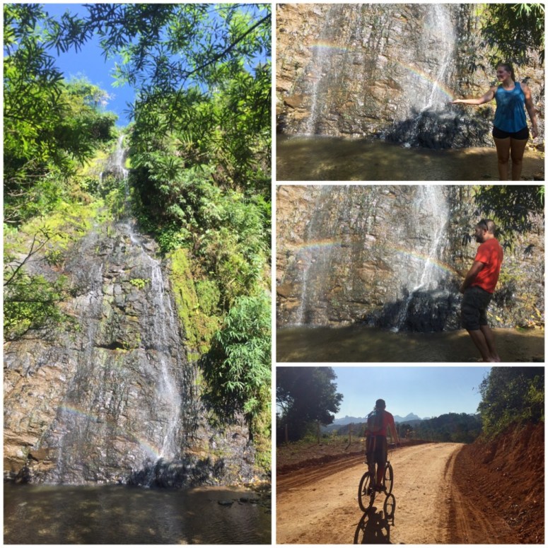 For our last day we rented bikes and went out of town to a nearby waterfall. It was a fairly bumpy ride, but we made it up to the fairly unimpressive little waterfall that wasn’t flowing that strong here in the dry season. There was a small rainbow playing against the falls that we took full advantage of for some colorful, ‘ha’ photos. The ride down was much more fun than the ride up, but equally destructive to our undercarriages.