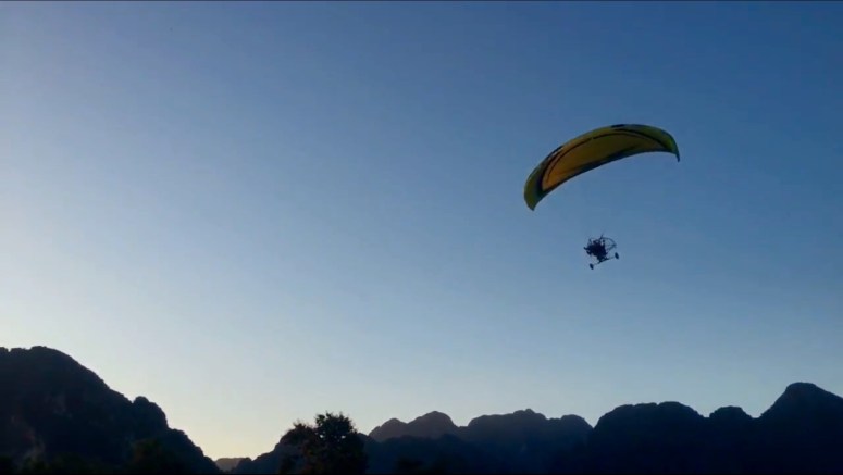 We did make our way to the river to watch the sunset at a place called the Smile Bar. It had a row of hammocks, a row of individual docks, a firepit and a stage. The dock had a sign that said we had to purchase one beer for one hour of sitting time. So we bought two – one each. It was a nice spot to watch the sunset, a few tardy tubers, fire twirlers, hot air balloons and low flying fan parasails. The signs call them paramotors. Though they look awesome, not sure Laos is my place to try one. Also, we heard they’re $80 for a ride. That’s not a bad price, but honestly I’d rather pay a little more when my life literally hangs in the balance.