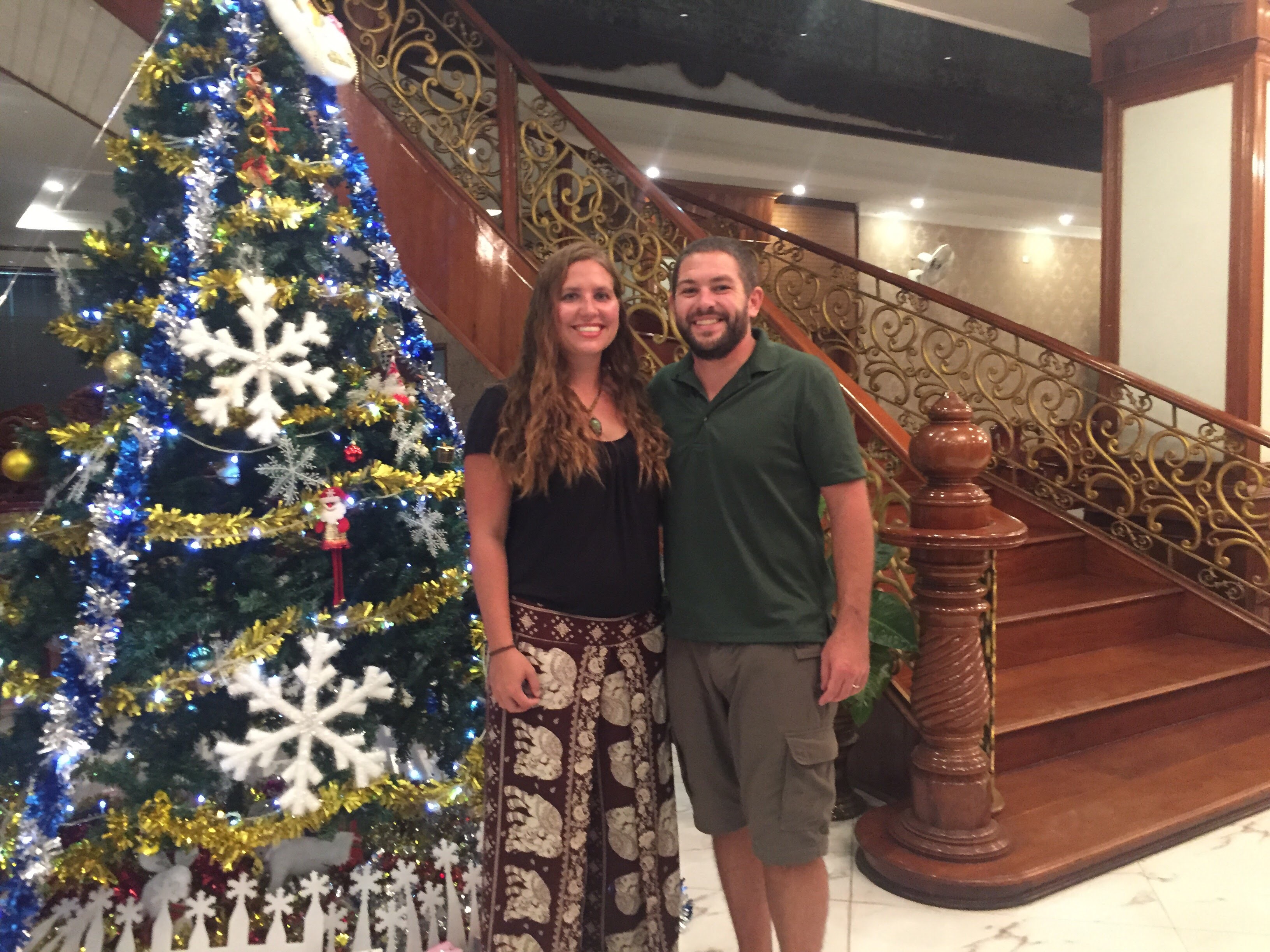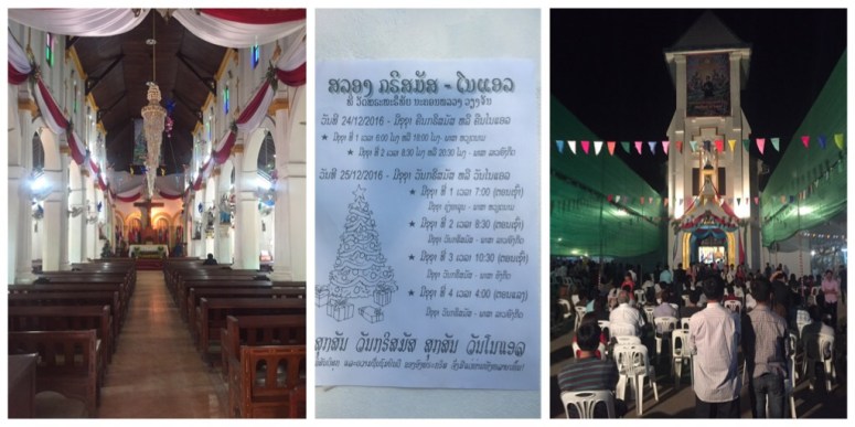 After crawling into a demon’s mouth, we went to church. Well, we swung by the church to see what time mass was (we couldn’t understand anything on the sign other than the times, it was a shot in the dark if we’d end up at the English service) then we went to the red tent market. Nate had a great idea that we could split up at the market, we’d each get $10 and a time limit to find the other a gift to open on Christmas morning. We met at a German pub when we were done. I splurged and got a German IPA for $10 (yes, one beer. $10). That beer tasted like heaven. We’re not sure if it’s because we’d been drinking light Southeast Asian beers for so long or if it really was an amazing beer but the hops danced on my tongue. We savored every drop before heading to mass. It was not in English. We sat through it, not understanding a word. One difference we thought was interesting was during the Rite of Peace. In a Catholic mass in the states, there is a part when you shake eachothers hands and give hugs. Here in Laos they bow to each other. It goes a lot quicker to simply bow four times in a circle.