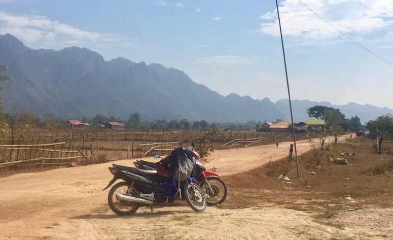 The Thakhek Travel Lodge was the place for aspiring motorcycle loopers?… loopists?… loopers. The food and room were cheap and basic but we’d read that these were the guys that would give you maps, ideas and when necessary coach you on a moto in an empty lot in back before sending you on a 450 km (280 miles) loop into the heart of Laos. For us, the lesson was necessary. We were graduating from automatics to semi-autos. Not because we wanted to but because they’d rented out all the autos. We had agreed that if we’re on a moto for four days, we’d each be getting our own. McKayla had a little bit of a shaky start but after a few laps, she was ready to roll. The bikes were very similar to autos, just left toes down to shift up, left heel down to shift down.