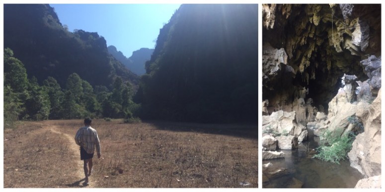 The loop was dotted with caves, waterfalls, springs and high mountain flood zones but by far the highlight was the drive itself. We wanted to focus mostly on the ride the first day because we knew we’d be on the slow end of the average time but we did make one stop a few hours in at, what else, a cave. Our funny little roadside guide took us a short walk to a wide opening. It was a nice, big open cave mouth with a stream running through it. “Well, that was nice, not sure why we paid a guide for it,” I thought. Then he pointed at our shoes, then at his shoes. “Oh, we’re going in. Now he’s worth the $2.50.” Sure enough, he led us in and wrapped us through the cave along a nearly unseen path over rock and through some tight gaps and brought us out a different cave entrance and looped us back to the original trail. I had had my doubts about our guide at first but I couldn’t have imagined a better guy to follow into a strange cave who would point out stuff with grunts and clicks. I tried to get a picture of him with McKayla but he was busy grunting at the other couple that had gone in with us. Glad we had exact change. (Just to be clear, he wasn’t speaking Lao, he was using grunts and clicks to get or direct our attention.)