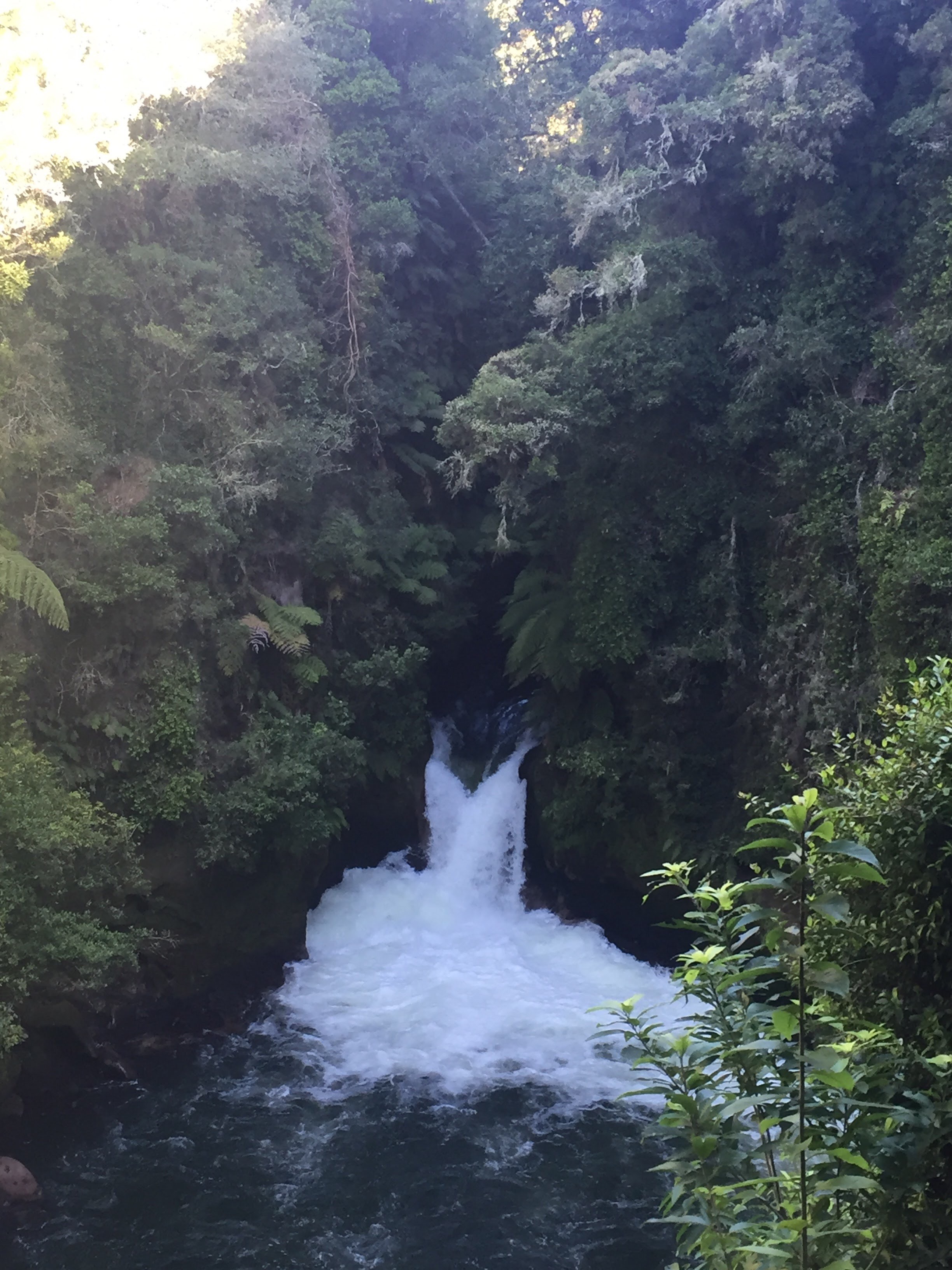 On our drive south, we found an area with a few little waterfalls so we stopped for a walk. One of the falls was easily the largest rapid I’d ever seen a raft attempt to conquer. They even had a watch deck set up across from the falls so you could view rafters and kayaker attempt the plunge. We saw a kayaker make the 10 foot fall fairly smoothly – he quickly resurfaced after the initial dive, still in his water craft. The raft of 6 however had gone completely vertical, hit the bow head-on and folded like a taco. Everyone resurfaced with the same cheerful screams that’d sent them over the falls.