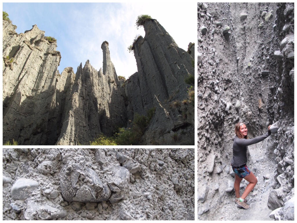These Pinnacles were an otherworldly (middle earthly at least) arrangement of spires tucked into a canyon just off the coast, no more than a half hour drive west from Cape Palliser. A poorly marked hour long walk up a streambed led us to the Pinnacles. There was an option to get an overlook of the unique rockscape but we opted for the up close and personal route that took you right under these massive, surely unstable spires. They seemed to consist entirely of large and small rocks held together somehow by sand. Not the most reassuring structures to be squeezing your way through. Especially considering, somehow these spires were so closely knit together they formed a variable maze; each space tighter, quieter and more eerie than the last. You could see large boulders protruding from the spires with an impossibly small amount of themselves still wedged into the thin sand. We just hoped our voices and movements weren’t the last little vibration they needed to be set free. It was all the creepier that we were the first and only ones in the area for the day, but it really let us get the best experience of being alone amongst stone giants doomed eventually to their destruction by gravity (or one of the several earthquakes that seem to hit New Zealand fairly regularly). They reminded me a lot of the Hoodoos in Bryce Canyon without the red rock, and the seeming lack of any stability.