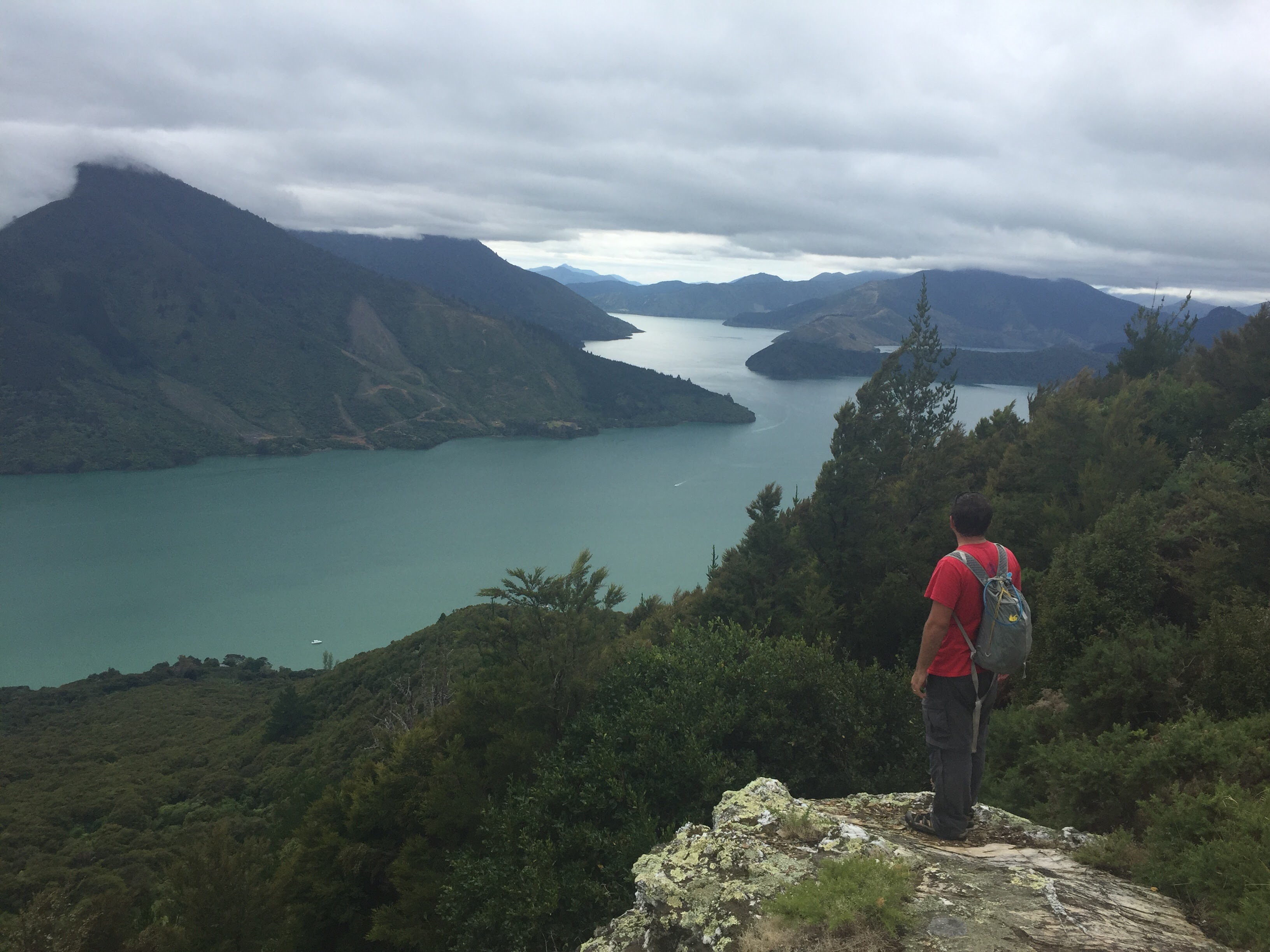 We woke up to clearish skies and some great green rolling hills springing up from the nearby sound. For as small as Picton was it was booming (we later learned there was an annual yacht sailing competition taking place that weekend, which explained the absolute lack of accommodation in Wellington and Picton) so we decided to head west ASAP. One look at a map of Marlborough Sounds and you’ll see how tempting the area is, regardless of ceaseless wind and rain. There are endless coves and inlets on its speckled land/seascape. As we don’t have a power boat or the means to acquire one, we decided a few hikes to lookouts of these marvels would have to work for this trip. As great as forested hills encompassing bright blue seas are, the southern Alps await and priorities must be made.