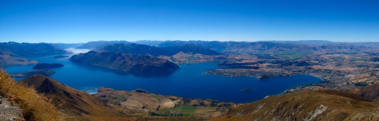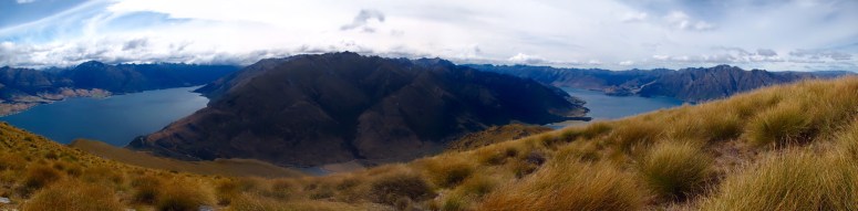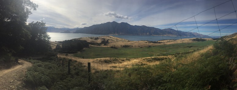 I’m not entirely sure who advised McKayla on climbing Mount Isthumus, but I’m glad they did. Speaking to you now at the end of our New Zealand trip, I’m confident in saying that this was my favorite hike. We began on the east side of Hawea Lake, just north of the town of Wanaka, and were rewarded with views the intire way up the track. The prestige blue lake to our west kept getting bigger along with the outstretching scenery of mountains. Again it was windy, but as we reached the final ridge leading to the summit we got a clear view to the east of the waiting Lake Wanaka. From the summit we had great look at the expanding ridgeline to the north, 2 big blue island dotted lakes to the east and west, and to the south lay some very impressively jagged mountains that featured some pretty wild, vertical cliffs.