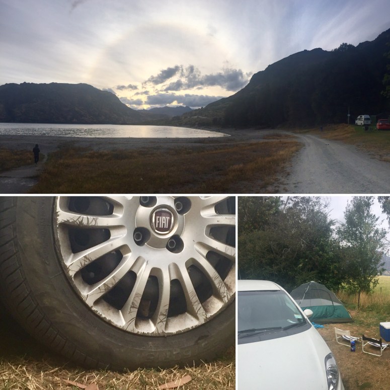 That night we pitched tent close to the Mt. Isthumus trailhead, along the north lake shore of Lake Hawea. We’d thought we’d found a nice corner site with a glimpse of the lake and a wind break from some tall brush. Instead, we soon found that tall brush contained some of the bravest mice ever (they would’ve been a match for Speedy Gonzales, drowned Rataoulie in his own soup, ate the 3 blind mice and made Despero their bitch). These ballsy little critters got into our car while we were setting up tent, made it into the roof and found our food bin within 20 minutes. At first we assumed we carried a few emigrant mice from our hut 2 nights ago but no, we saw the little dickheads darting in and out of the brush, impervious to threats, taunts and stick throwing. Eventually we surrendered and hauled our tent to the main area of the campground. We knew one of the bastards had set up in the tire-well, hope he enjoyed the ride. Also, the sandflies were relentless. I was able to squeeze in a surprisingly pleasant swim and we both retired early to read and escape the continuous nagging of sandflies.