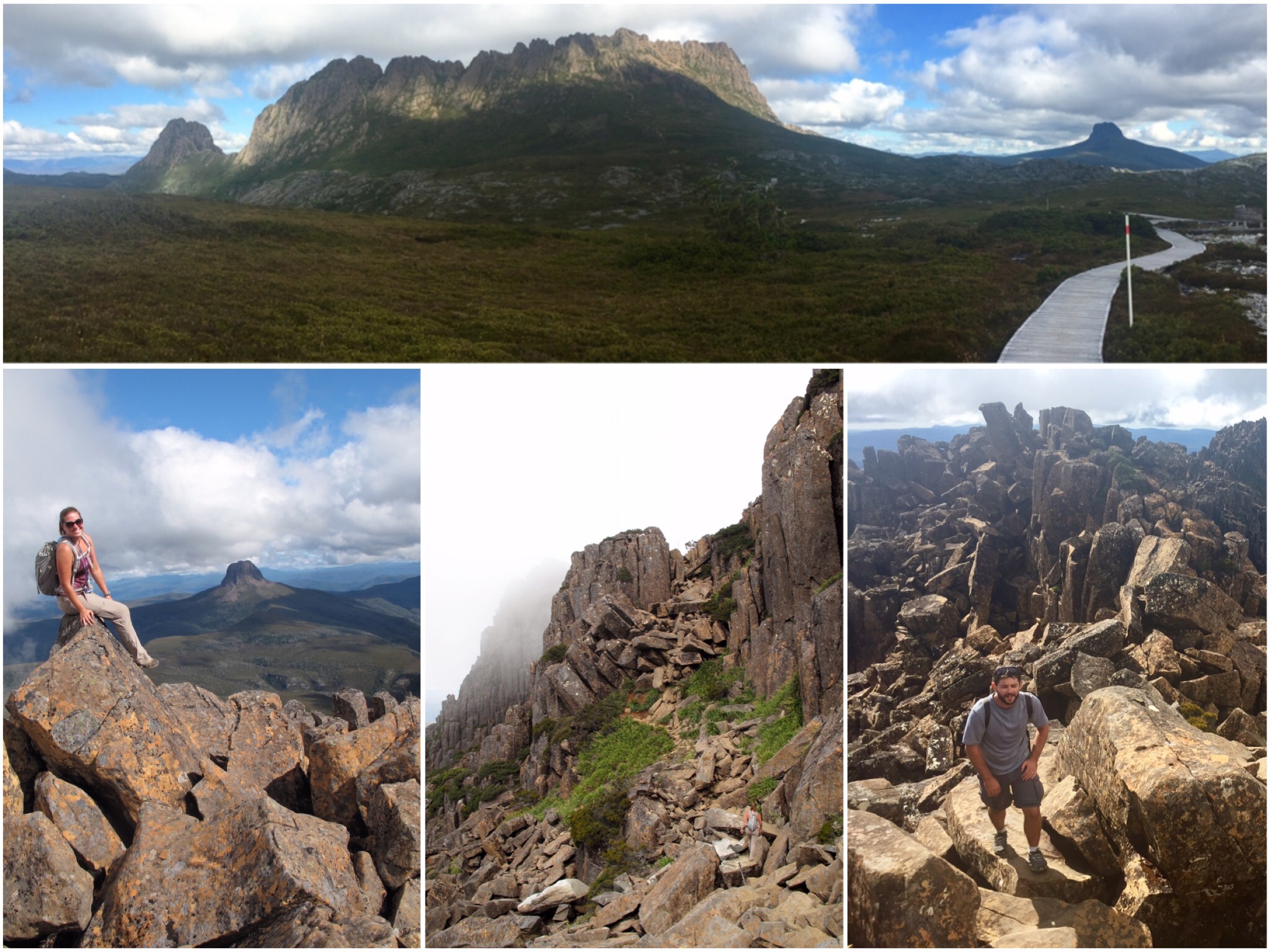 Cradle Mountain was in our sights Saturday. We got to the trailhead around noon and made our way around Dove Lake before beginning the ascent to Cradle Mountain (the 2nd tallest in Tasmania). Cradle Mountain National Park seems to be the most popular park of the island and we were walking around its most picturesque lakes but as soon as we broke off from the lake, people became much fewer and farther between. A short way up the initial ascent we happened across a 6 foot tiger snake that was nearly as wide as a beer bottle. McKayla and I have been dancing together almost 9 years ad I’ve never seen her pull moves like that before. Imagine her doing knee highs with a little butt wiggle every 3rd or 4th step. After our close encounter we continued up hill. At a saddle the trail broke off and headed up a a series of large boulders strewn throughout the mountainside. A series of orange tiped poles marked the suggested route but it was up to you to decide which boulders to hop between those markers. It was a fun scramble up a monster boulder field. The summit gave us a great 360 degree view but it really highlighted the mountain itself. Cradle Mountain looked like it was made of purple, red and grey Legos stacked vertically, the boulders on the way up were merely some of the fallen Legos.