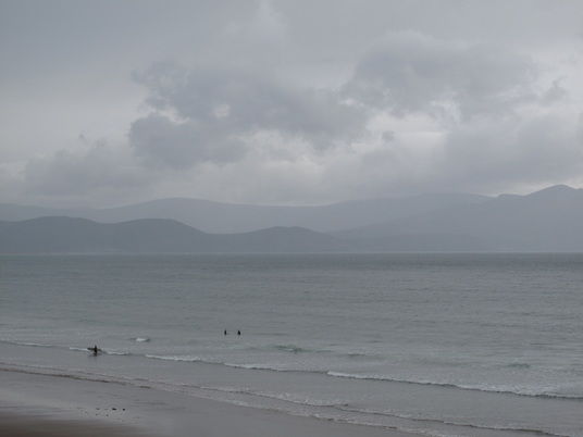 After another break in the rain we took off to finish our ride to Dingle. The route was incredible, about 5 miles of it streched along the Red Cliffs overlooking the Dingle Bay, the cliff, and, of course, the rolling green hills beyond. What suprised me most was the surf school off the beach of the Dingle bay. I’m not one to talk – I’ve never surfed, but the waves seemed a little small.